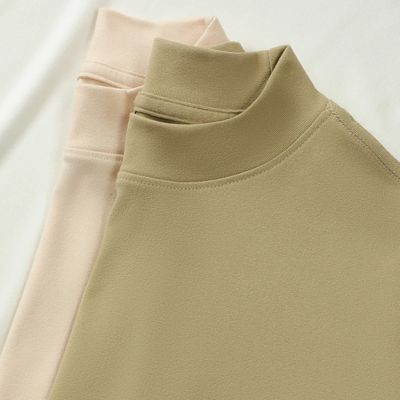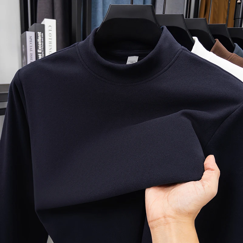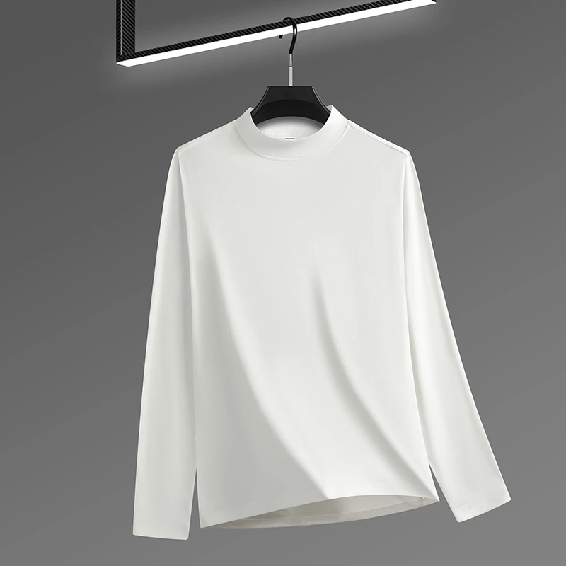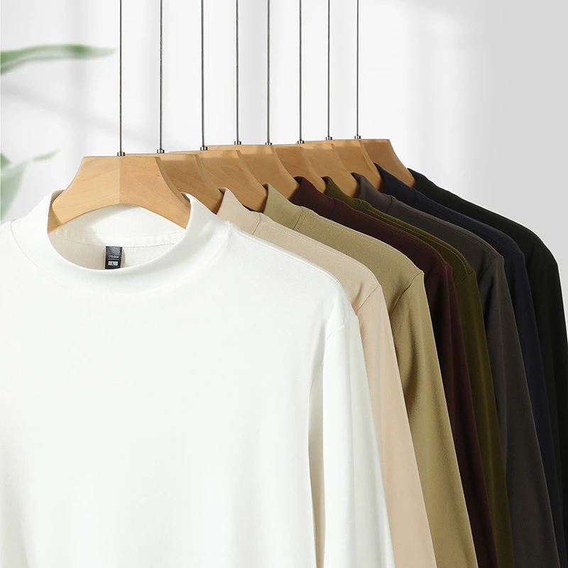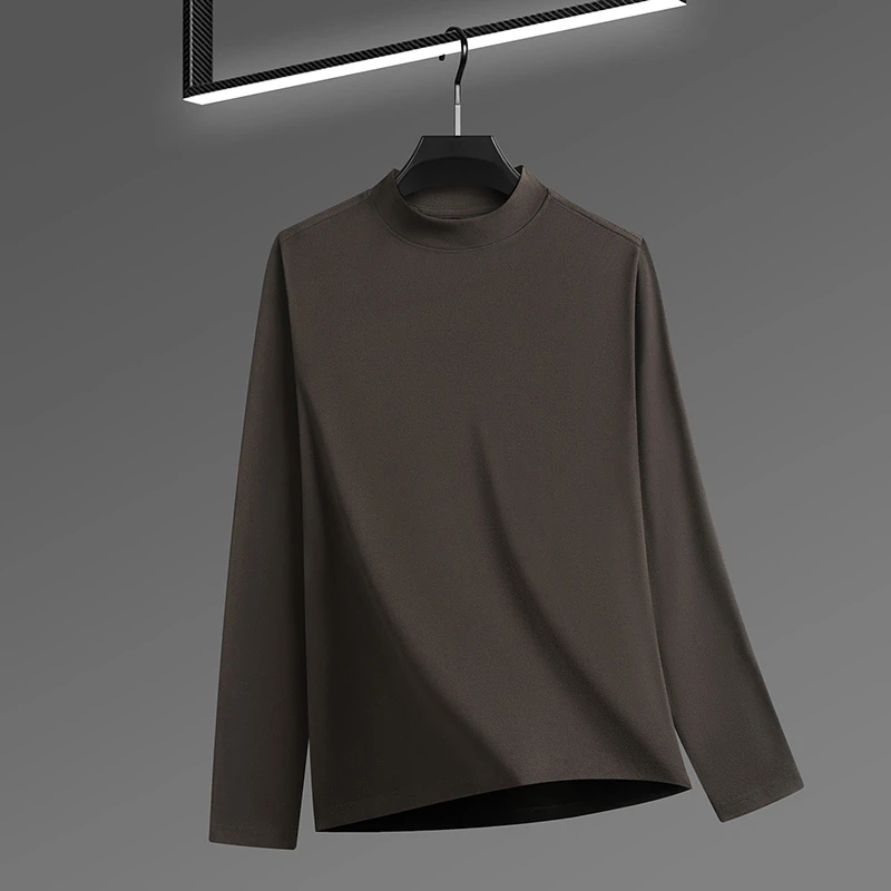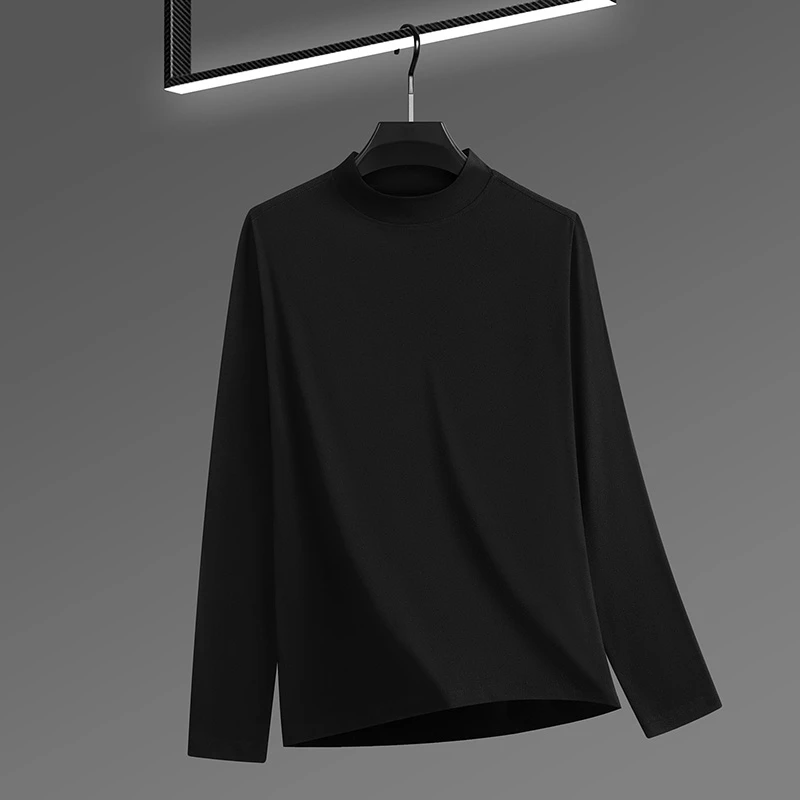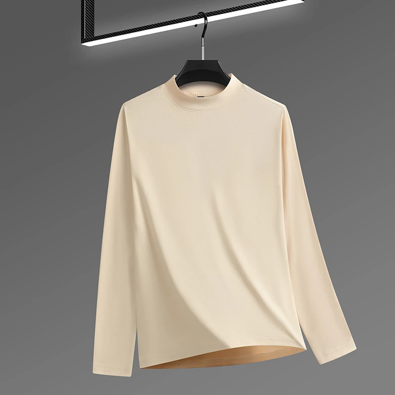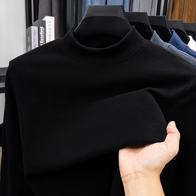 2025 New Men's Casual Solid Color High Collar Velvet Long Sleeve T-shirt Spring and Autumn Versatile Comfortable Top