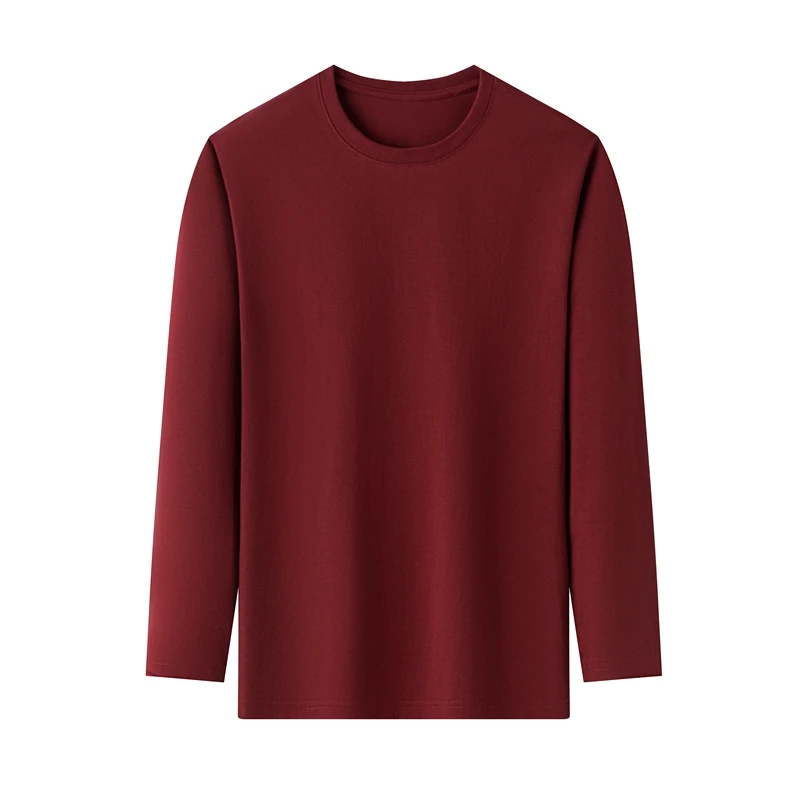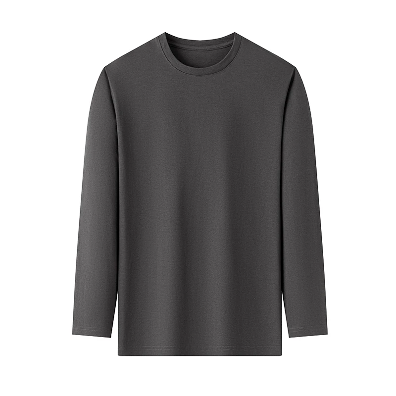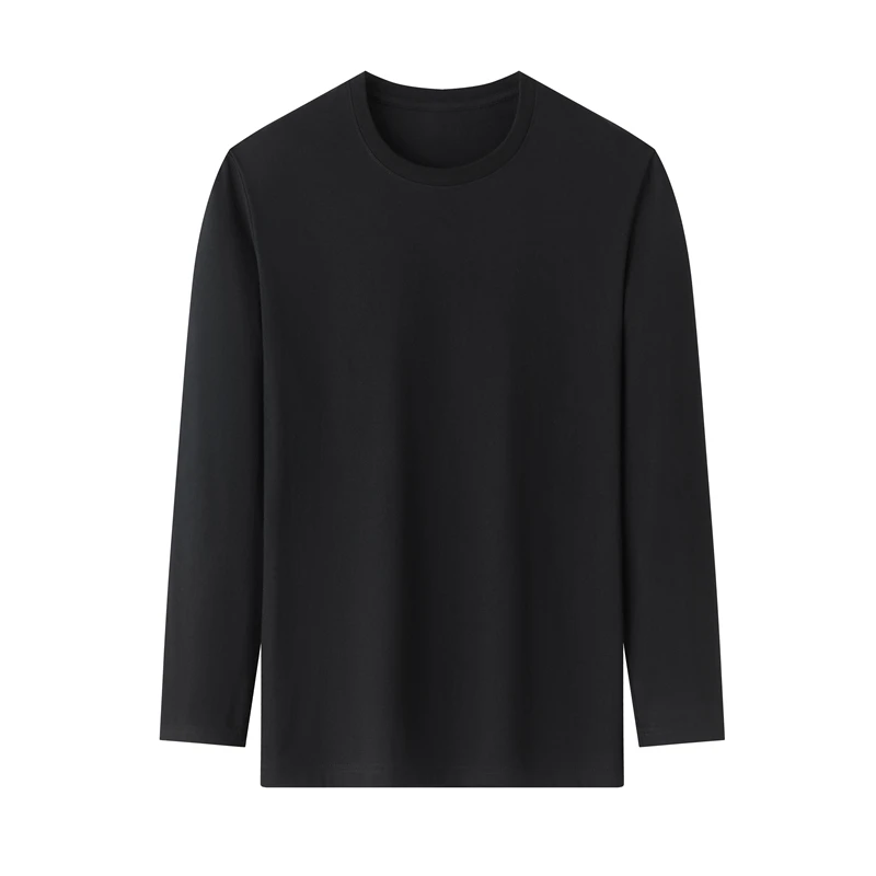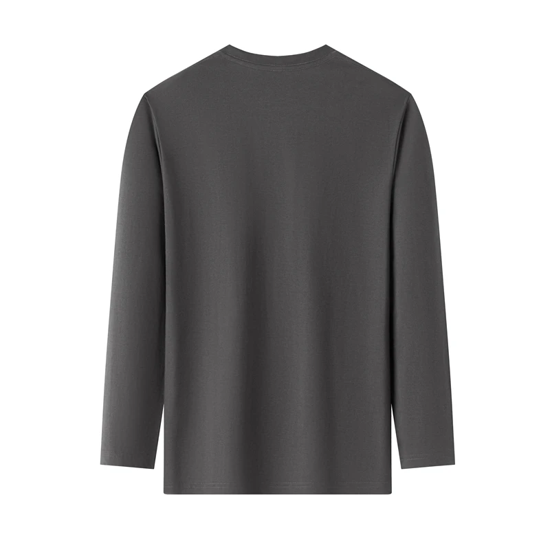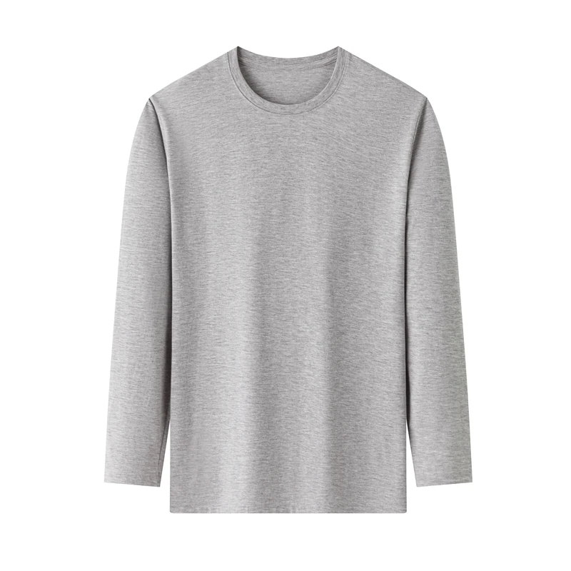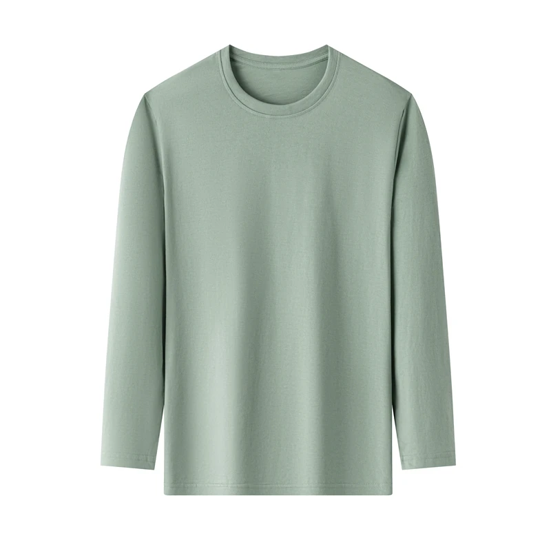 Men's Solid Color Round Neck Cotton Long Sleeved T-shirt Summer Comfortable Top